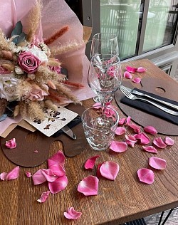 Pour un PACS, nous avons mis en scène un bouquet en fleurs stabilisées au restaurant Le Carré d'Art à Poitiers, qui a fait une heureuse lors de son arrivée !
